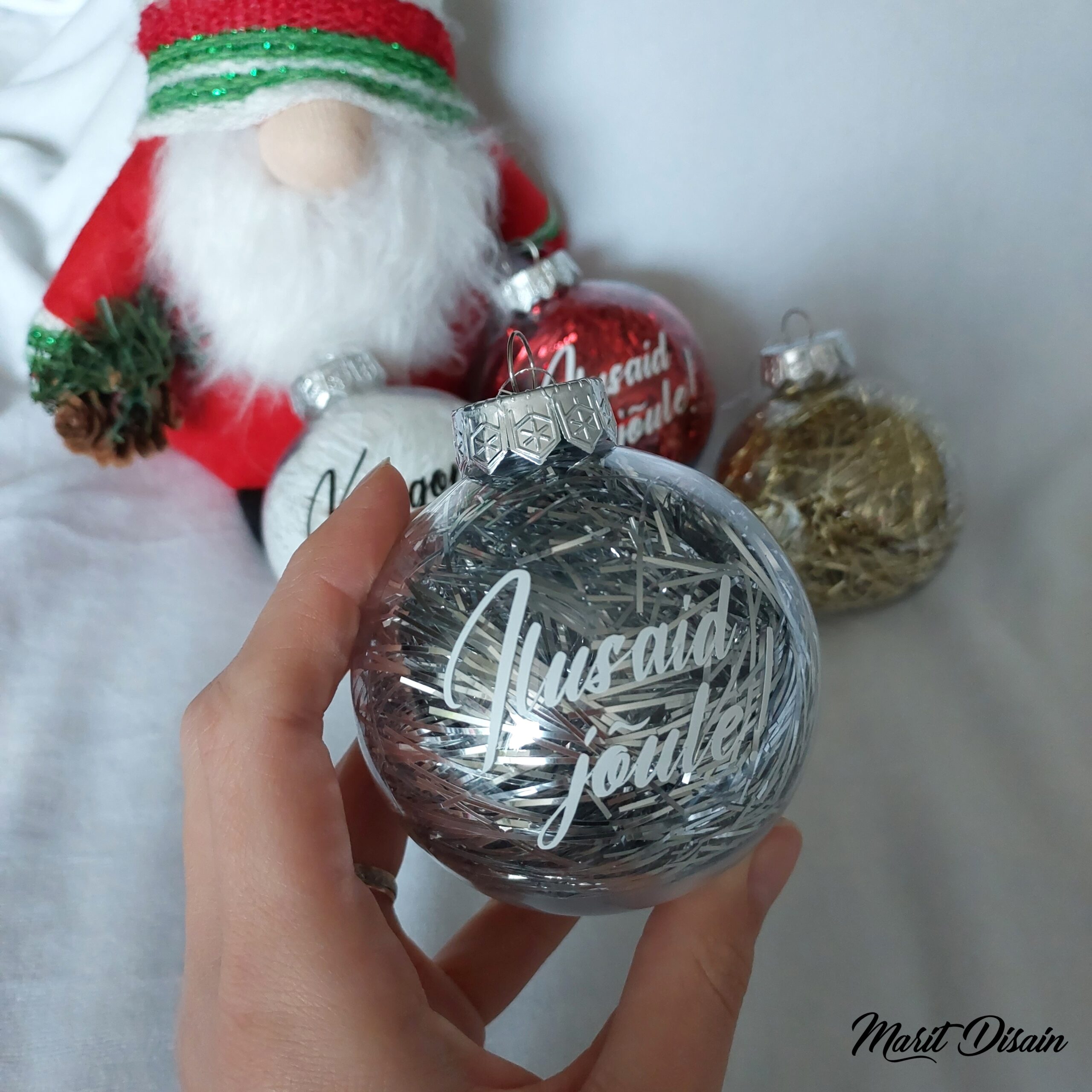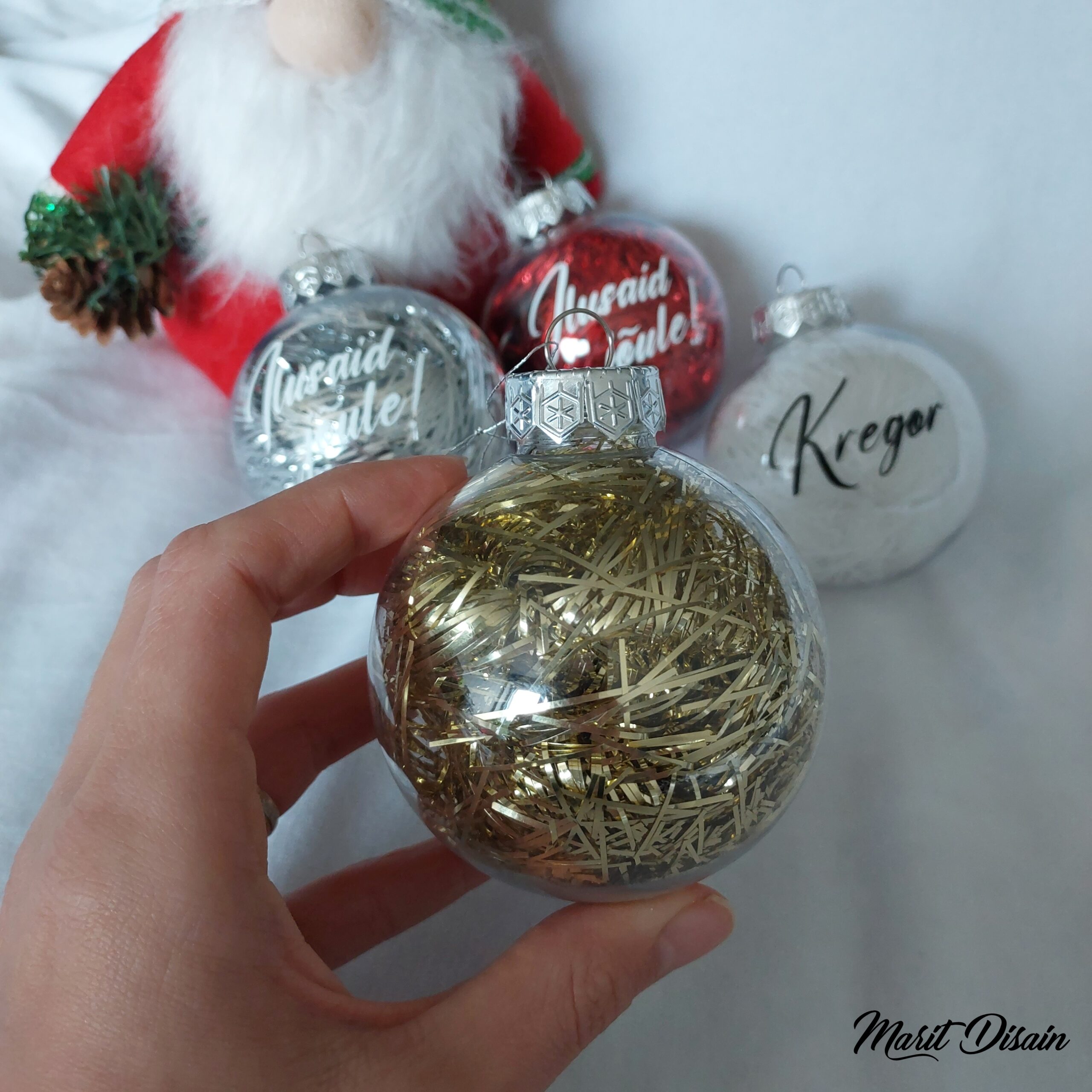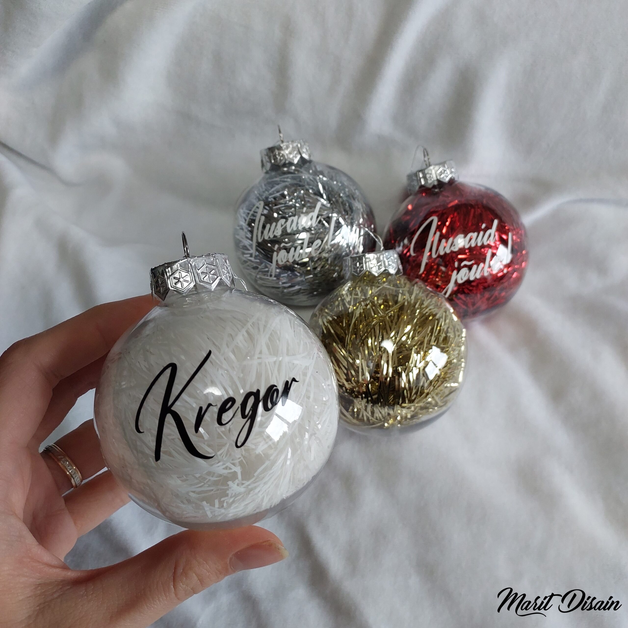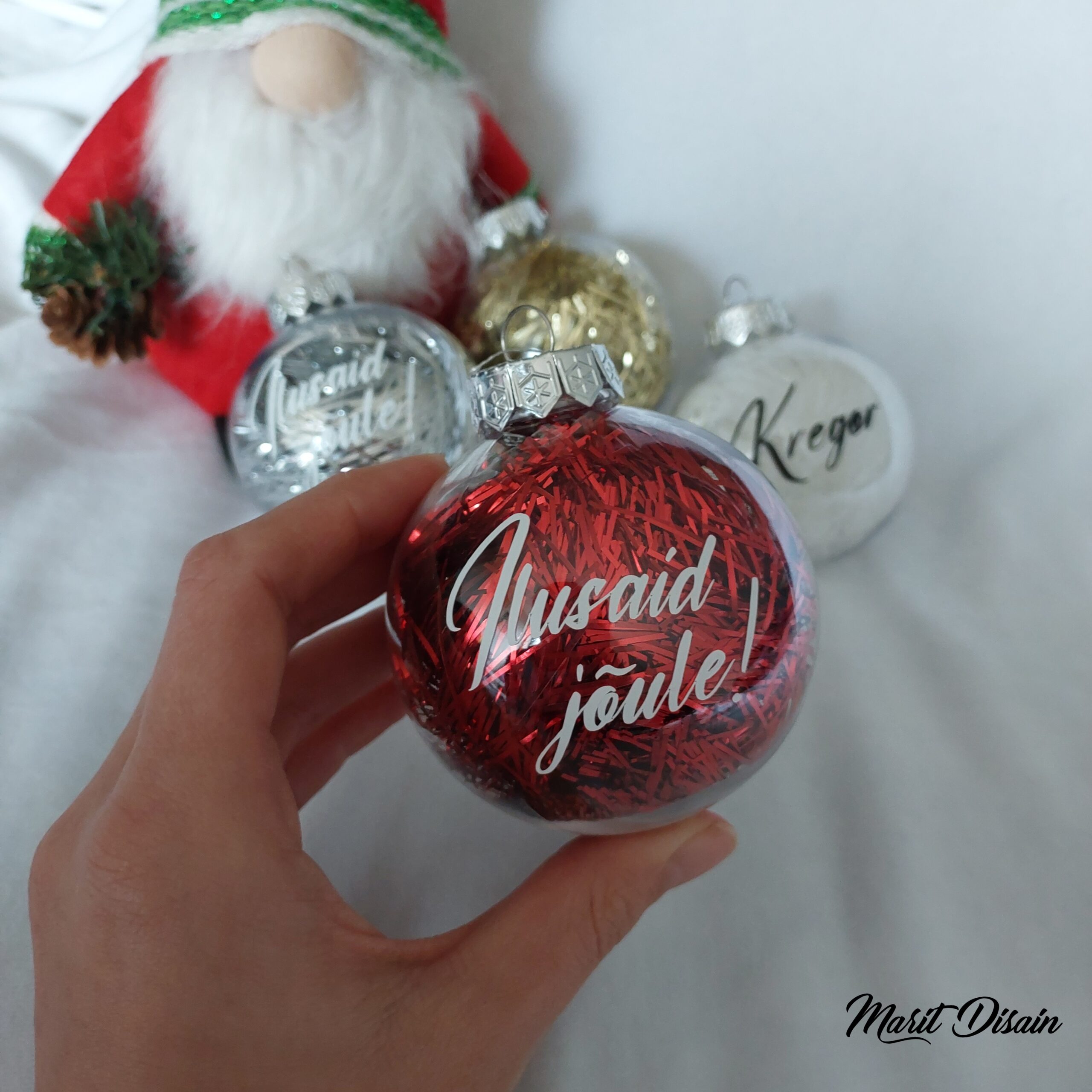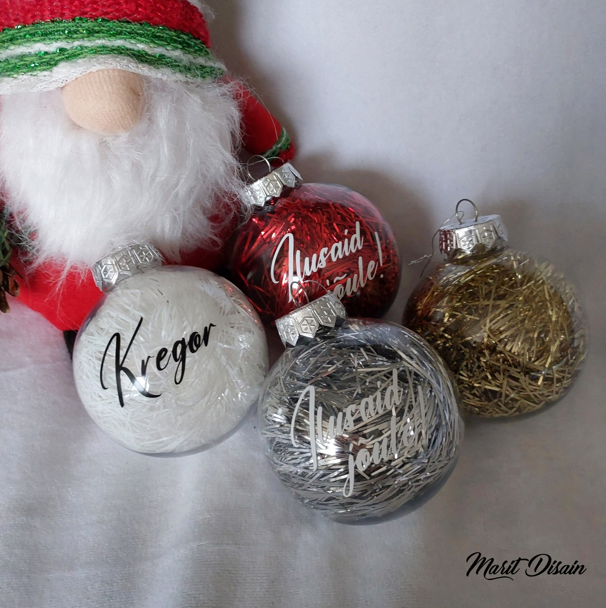 Nime või lühikese jõulusooviga jõulukuulid / jõuluehted